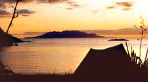 Camping on Great Barrier Island, looking towards Little Barrier Island.